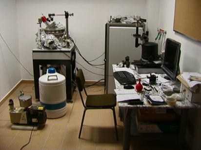 vacuum chamber (10-6 Torr), vibration isolation system and videomicroscope with