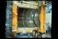 | Do pomiaru energii cząstek wykorzystywane są detektory zwane kalorymetrami. Są one tak skonstruowane, żeby wyhamować większość z neutralnych i naładowanych cząstek. Zazwyczaj do pomiaru energii elektronów i fotonów potrzebny jest inny typ kalorymetru niż do pomiaru energii protonów, neutronów, pionów i pozostałych hadronów, czyli cząstek zbudowanych z kwarków. |